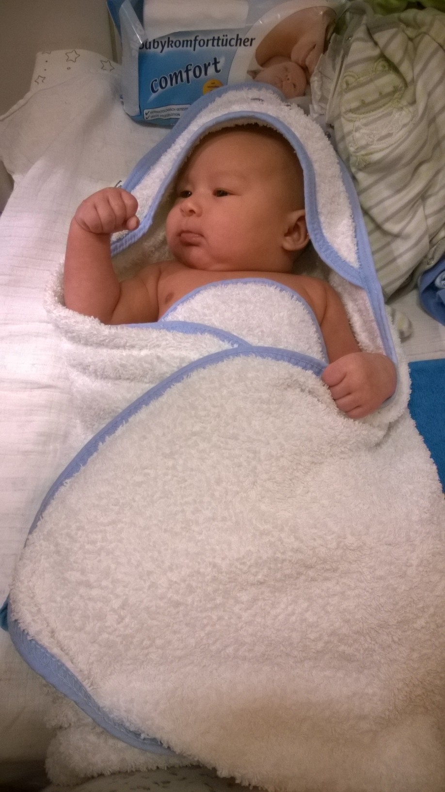 1. It is really much fun for us to watch him discovering new things each day. Of course there are also times when we are just exhausted for example when he can’t fall asleep suddenly around 4am…