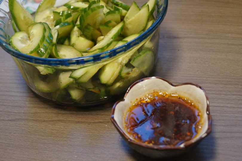 DSC03042 April 1, 2015 5456 × 3632 Pancake Day cucumbers slized in small pieces and the sauce before mixing