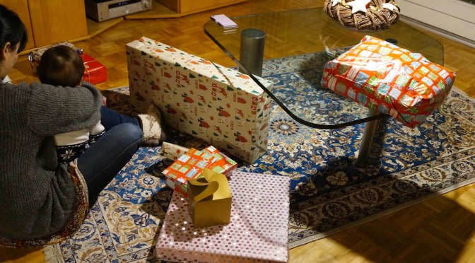 After we arrived back home the exciting part came when it was time to exchange the Christmas presents. I won’t go too much into detail but Nathan got some Lego Duplo with which he is playing non-stop currently and I got from my wife a quadcopter which I successfully crash-landed already. I think my wife got a pretty awesome gift for me as she can just cart me to the nearby park with the quadcopter and I can just sit there and let this monstrosity fly around/ crash around plus scare other people. As you can see our Christmas has been very uneventful but something like this is nice as it allows you to relax a bit and enjoy the whole day more. For my wife the most exciting part besides receiving her gift was to decorate the Christmas tree. At this point I have to thank the old man to help getting this tree into our apartment as I wouldn’t have been able to do so on my own. For next year I need to remember to buy only what I also can carry!